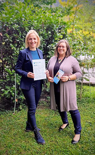Der Austausch war so lebendig und inspirierend, dass wir ganz vergessen haben, Fotos während der Veranstaltung zu machen. Daher gibt es diesmal nur ein Bild unserer Obfrau Heidi Winsauer und Geschäftsführerin Iris Lins mit den neuen Flyern und dem Jahresbericht.